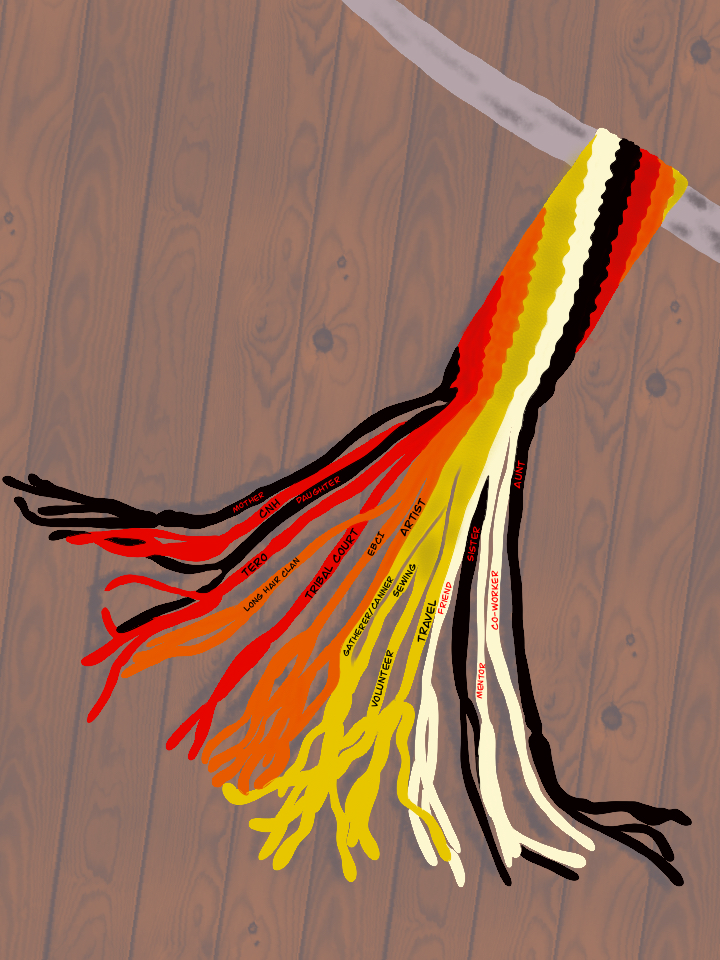 As an artist, I make ribbon skirts, fingerweave, traditional wear, and graphic design work. I’m also part of the Indigenous Logic Cohort, where I explore visual storytelling as a way to support Native communities through art. Feel free to email me if you are interested in Graphic Notetaking for you or your organization.